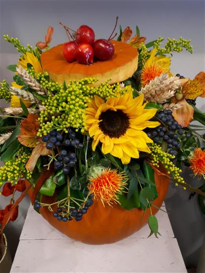 PRE ORDER.... ONLY AVAILABLE FROM 10th October to 31st October ....Fun ..Fun..Fun Bring a bit of Halloween novelty to someone this Halloween....These Halloween Pumpkin arrangements are only available for a limited time .Orders can be placed anytime up to Halloween.